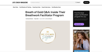 I’m the Founder of Breath of Gold®--most well-known for its trauma-informed Breathwork Facilitator Program. I've guided and trained students all around the world.