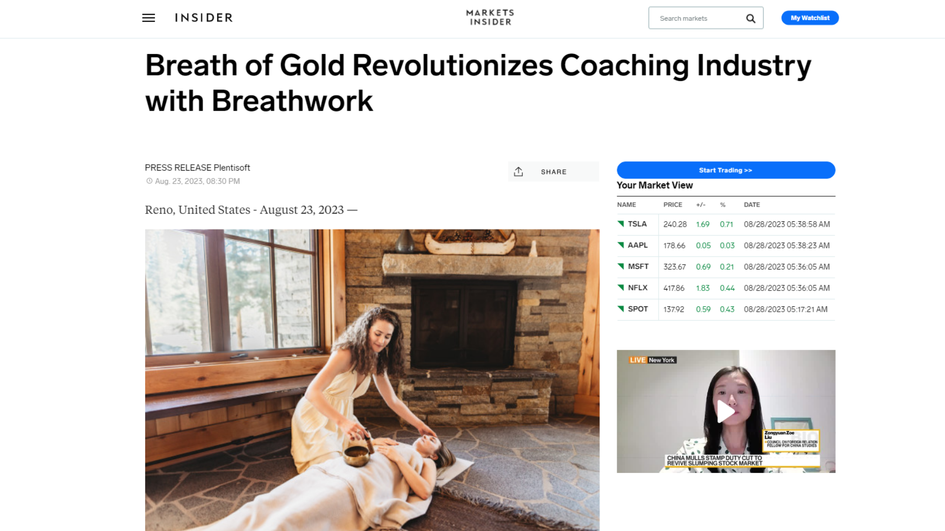 I’m the Founder of Breath of Gold®--most well-known for its trauma-informed Breathwork Facilitator Program. I've guided and trained students all around the world.